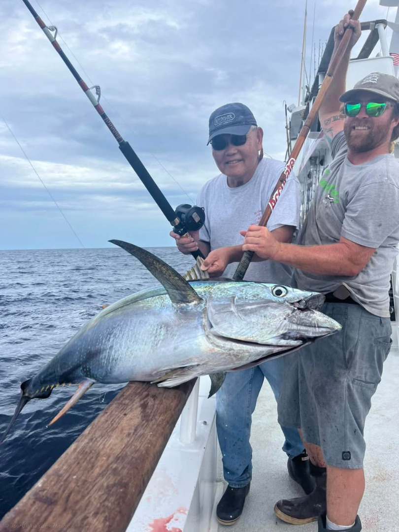 Really nice day on the tuna grounds. The weather remained perfect all day .A nice mix of tuna with fish in the 70 pound range. Classic fall sunset to end a great day. Moving up the line to stay out of the storm that's moving up .