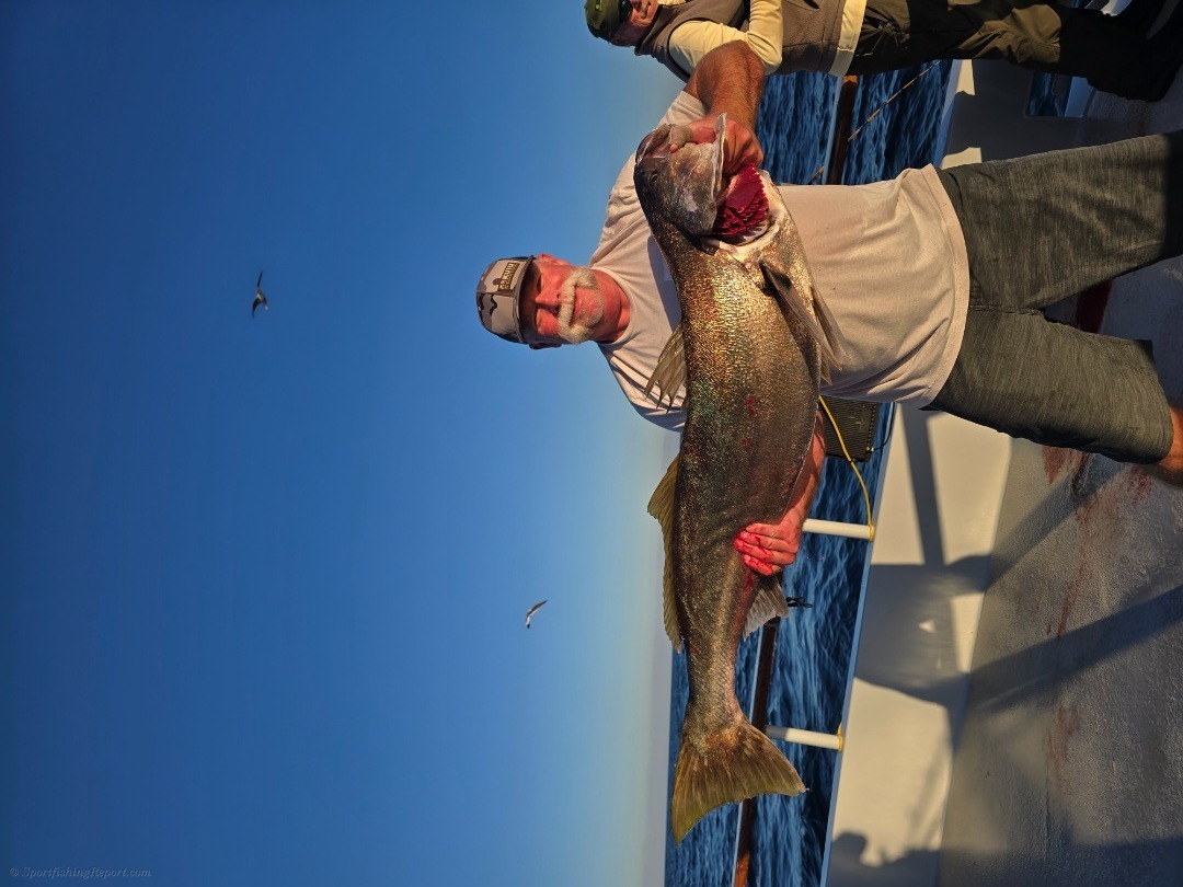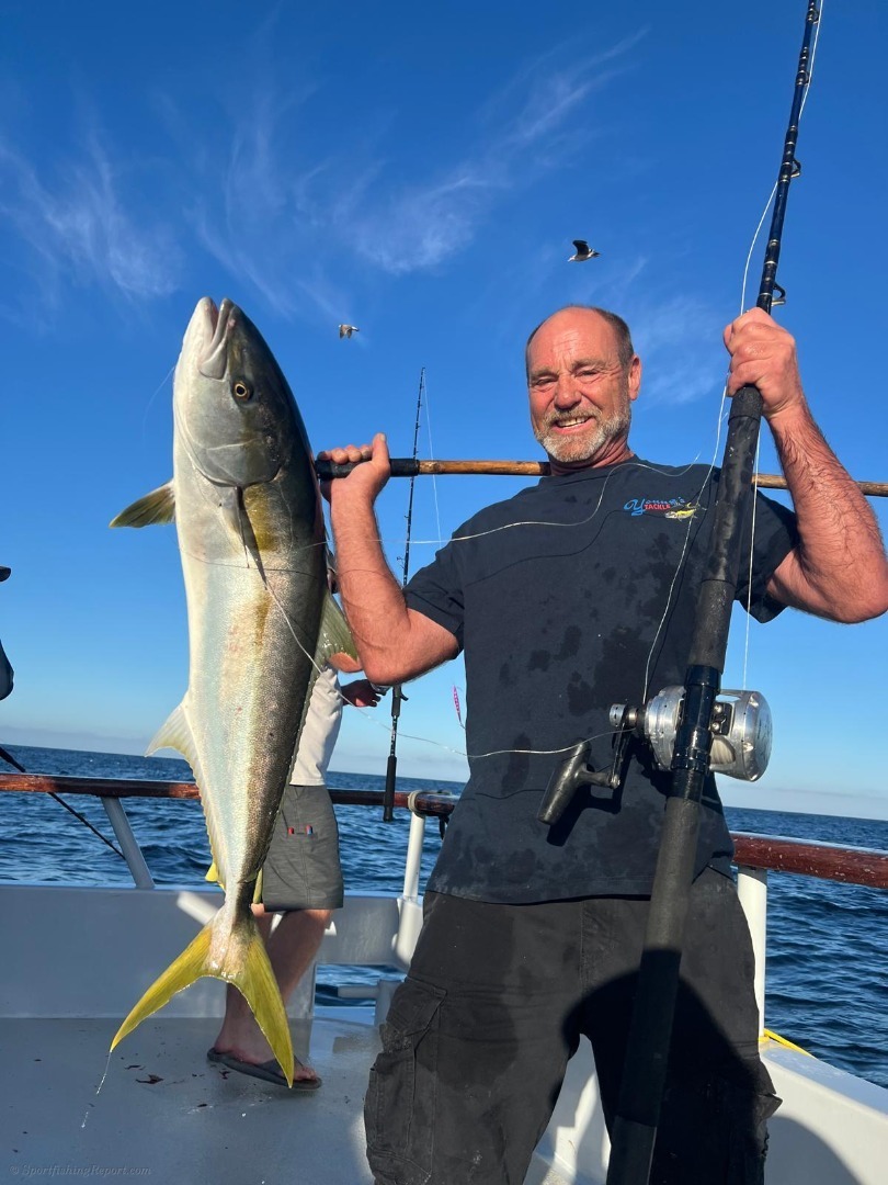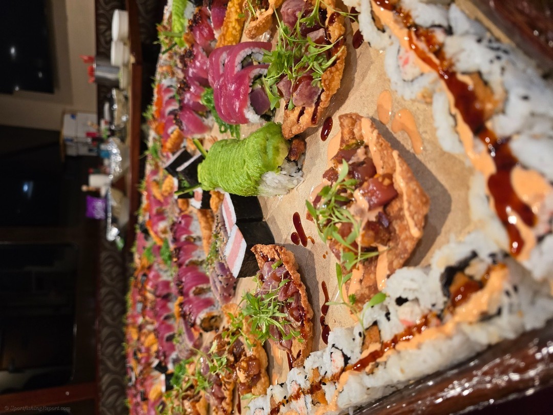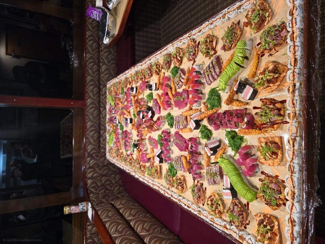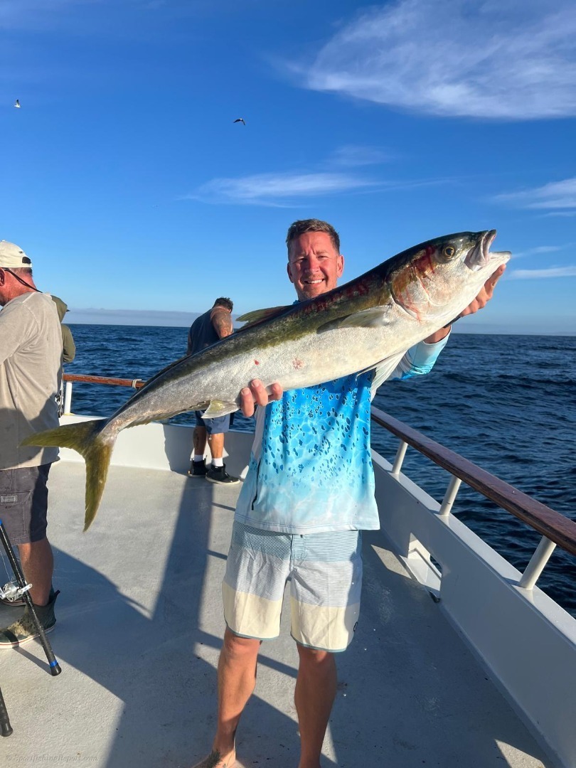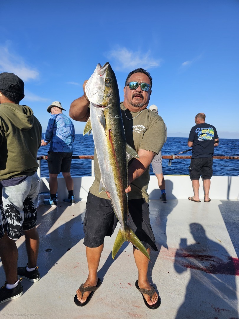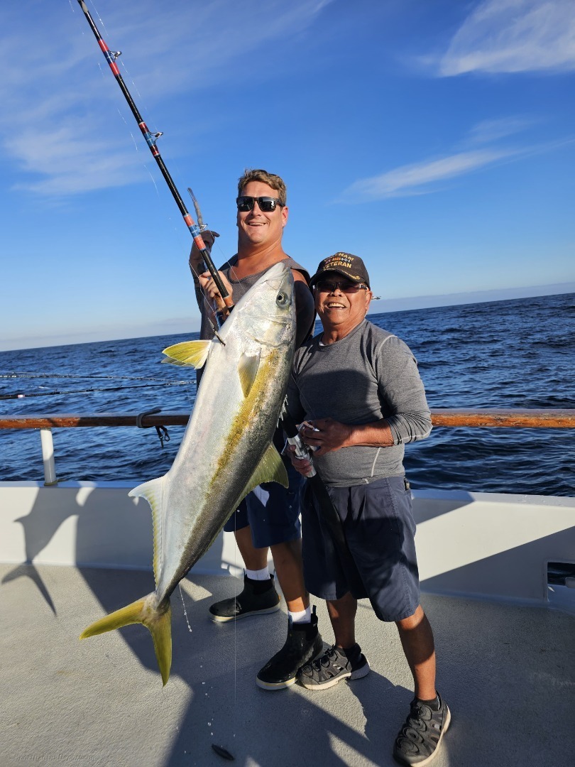 We traded numbers for size today, bringing in some trophy-grade yellowtail and big white seabass. It was a stellar day of fishing followed by an even better meal—huge thanks to Chef Ed and Chuck for the amazing sushi spread!