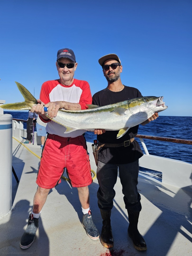After traveling for the last few days, we arrived in a different area and found a decent grade of yellowtail starting early this morning in the dark and continuing throughout the day. We’re focusing on tanking up on big bait tonight to make sure we're ready to do it all over again