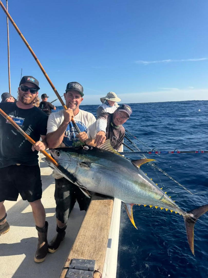 Nice day today with good grade tuna and good grade yellowtail. The weather has calmed down to a light breeze and we are all feeling the stoke. Why not, let's do it again tomorrow!