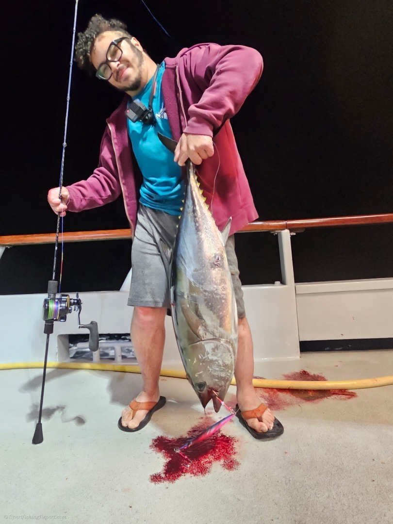 We’ve had some truly excellent fishing to kick off the season. In just a day and a half, we have already reached near-limits of bluefin tuna. With the main target well-represented in the hold, we are making the call to slide further south to hunt for the yellowfin reported earlier this week.